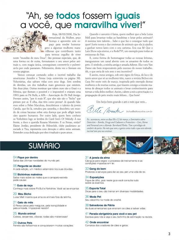 Revista dedicada aos amantes de pets, com edições dedicadas a cuidados e curiosidades sobre as raças.
