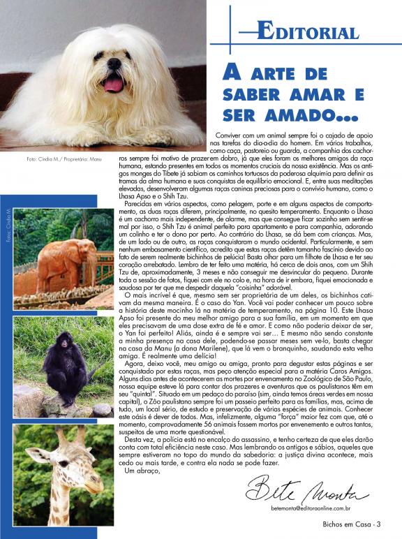 Revista dedicada aos amantes de pets, com edições dedicadas a cuidados e curiosidades sobre as raças.
