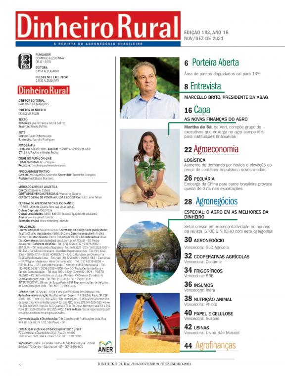Reconhecida como a única revista do Brasil a tratar o Agronegócio por seu viés corporativo, Dinheiro Rural aproxima os empresários rurais do universo urbano através de um jornalismo especializado com linguagem dinâmica e fácil.