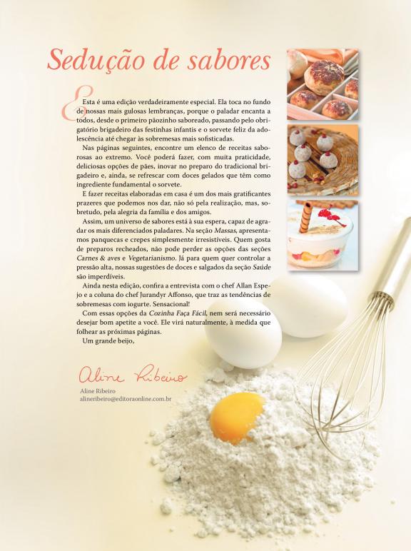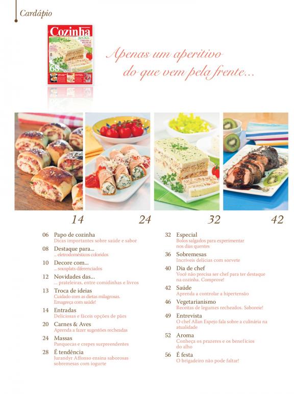Esta revista compromete-se a ensinar, todos os meses, receitas rápidas e simplesmente deliciosas tanto a dona de casa como para quem chega em casa ao final do dia sem muito tempo para cozinhar.