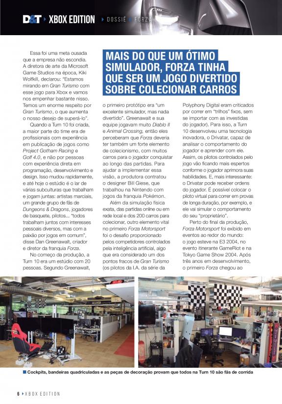 Além de esmiuçar os detalhes dos jogos da linha Xbox, a revista conta com a participação direta dos profissionais envolvidos na produção dos games e a vivência da redação em ter testado o jogo antecipadamente.