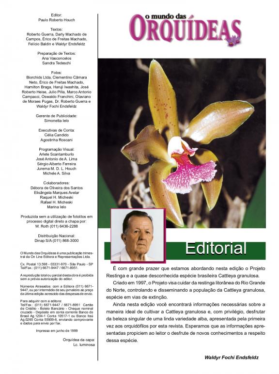 Na publicação “Mundo das Orquídeas” você confere as diferente espécies e como cultivá-las. Pessoas que fazem história na orquidofilia também não podem ficar de fora! Veja entrevistas exclusivas e muito mais.