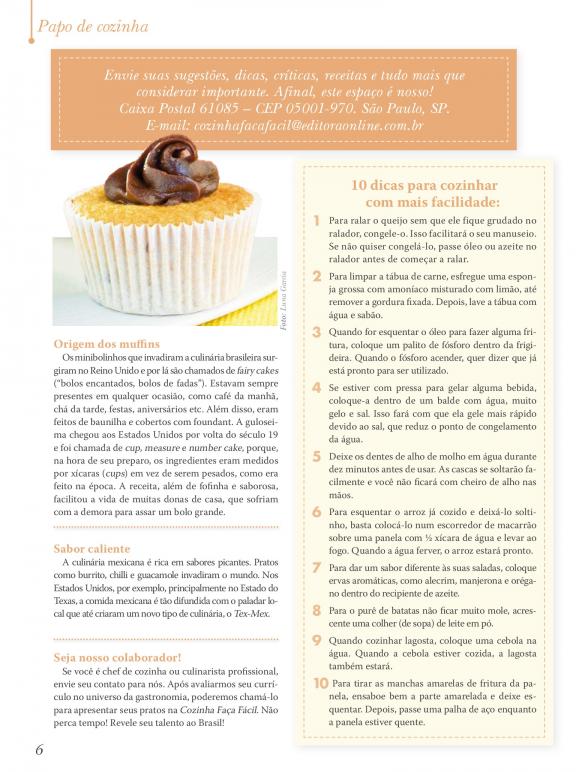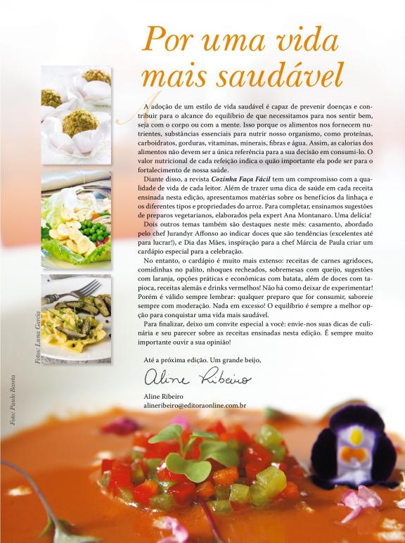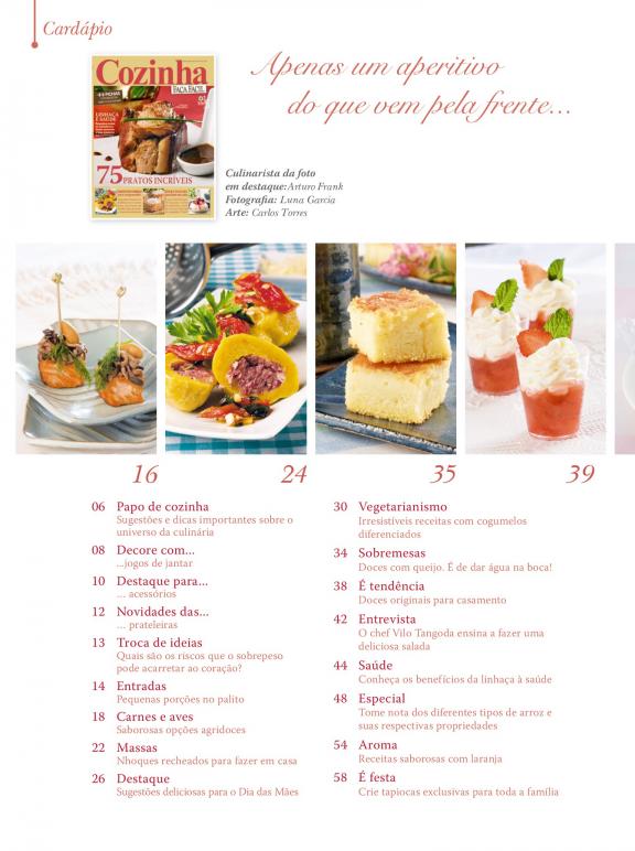 Esta revista compromete-se a ensinar, todos os meses, receitas rápidas e simplesmente deliciosas tanto a dona de casa como para quem chega em casa ao final do dia sem muito tempo para cozinhar.