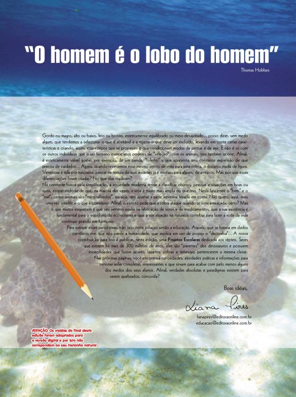Revista dedicada a professores, pedagogos e interessados em assunto de educação. Traz dicas de atividades para aplicar na sala de aula, além da discussão de assuntos importantes como inclusão, bullying, etc.