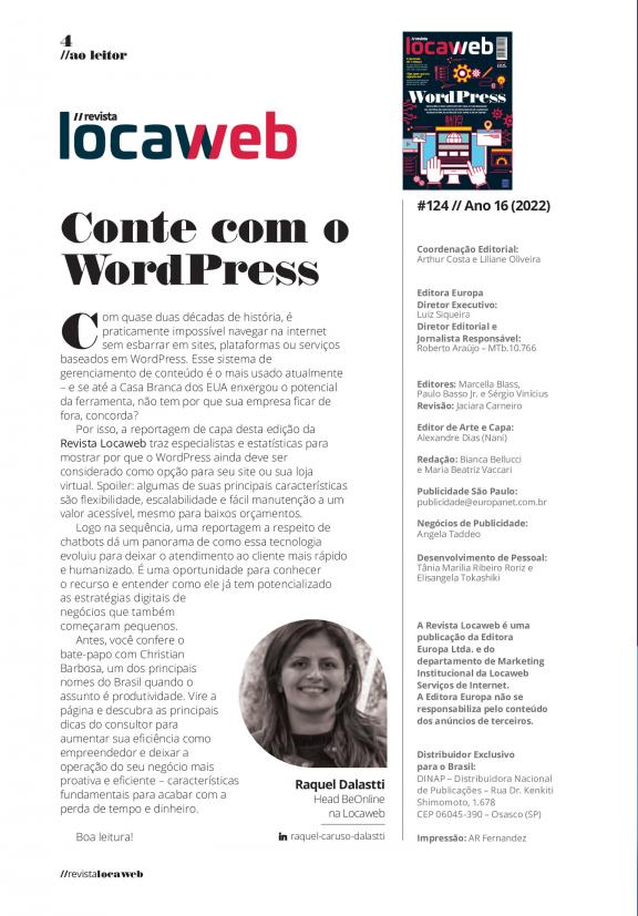 Esta é uma publicação customizada da maior empresa de serviços de internet do Brasil, a Locaweb. Uma publicação criada para os profissionais de TI, desde pequenas empresas a grandes corporações.