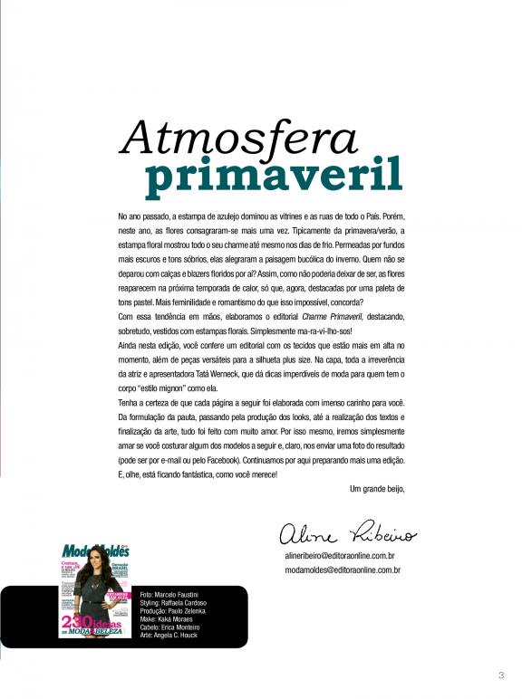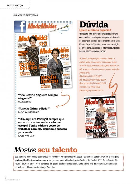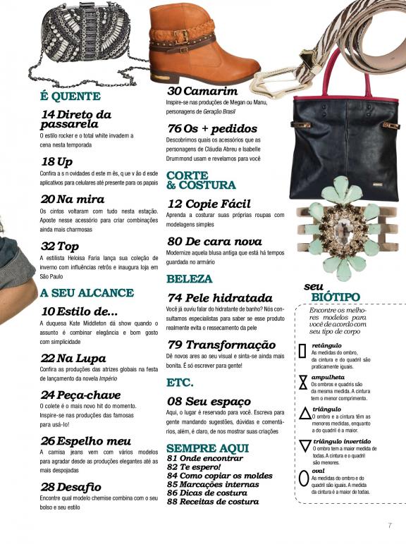 Revista para mulheres que gostam de ficar por dentro das tendências da moda e com o que vai emplacar nas vitrines. E as leitoras adeptas do "faça você mesma" contam com moldes exclusivos para enriquecer o guarda-roupa com muito estilo.