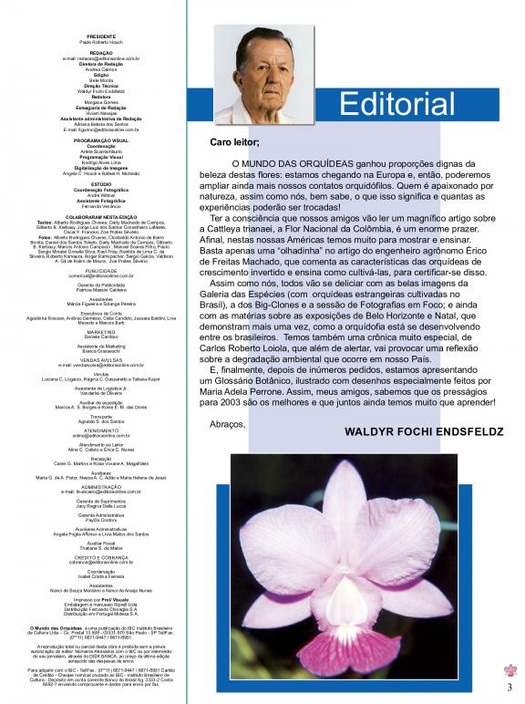 Na publicação “Mundo das Orquídeas” você confere as diferente espécies e como cultivá-las. Pessoas que fazem história na orquidofilia também não podem ficar de fora! Veja entrevistas exclusivas e muito mais.