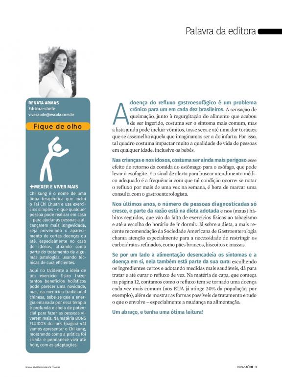 A revista Viva Saúde é um verdadeiro guia de saúde e bem-estar. Com uma equipe de consultores especializados, apresenta informações sobre os temas de saúde mais discutidos da atualidade, além de causas, sintomas e tratamentos de diversas doenças.