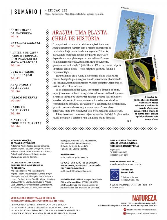 Natureza traz dicas de como cultivar belíssimas plantas ornamentais. Tudo de maneira muito didática e com muitas fotos. Fora isso, cada edição conta com jardins de conceituados paisagistas brasileiros.