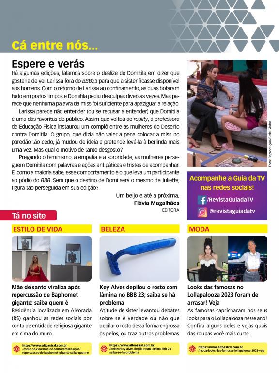 O mundo dos artistas, bastidores da TV, flagras incríveis, entrevistas e pôsteres dos famosos. E mais: resumo de todas as novelas e revelações exclusivas sobre os personagens.