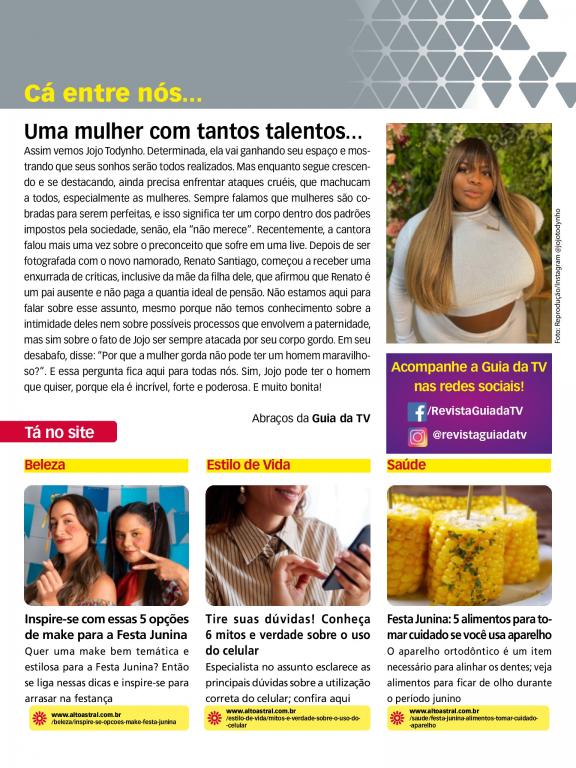 O mundo dos artistas, bastidores da TV, flagras incríveis, entrevistas e pôsteres dos famosos. E mais: resumo de todas as novelas e revelações exclusivas sobre os personagens.