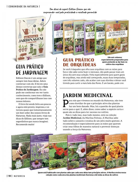 Natureza traz dicas de como cultivar belíssimas plantas ornamentais. Tudo de maneira muito didática e com muitas fotos. Fora isso, cada edição conta com jardins de conceituados paisagistas brasileiros.