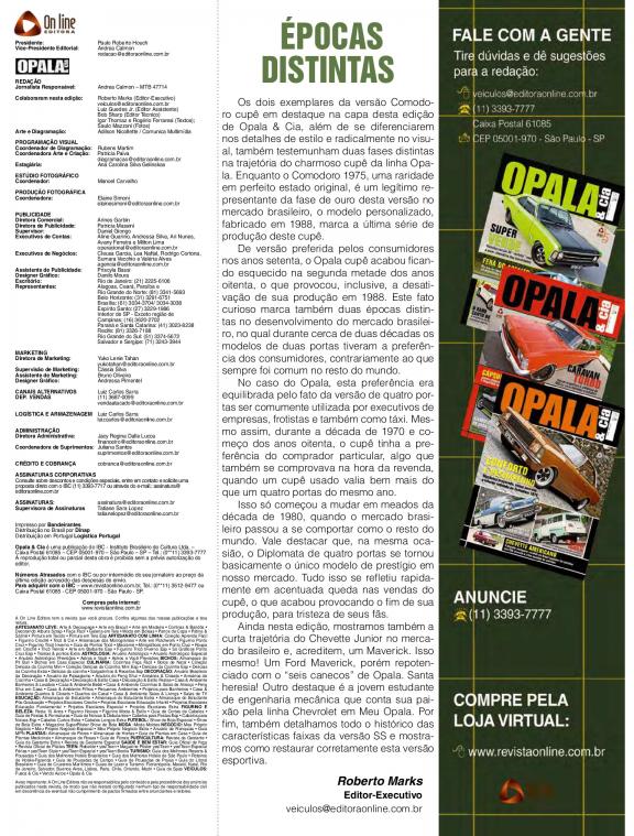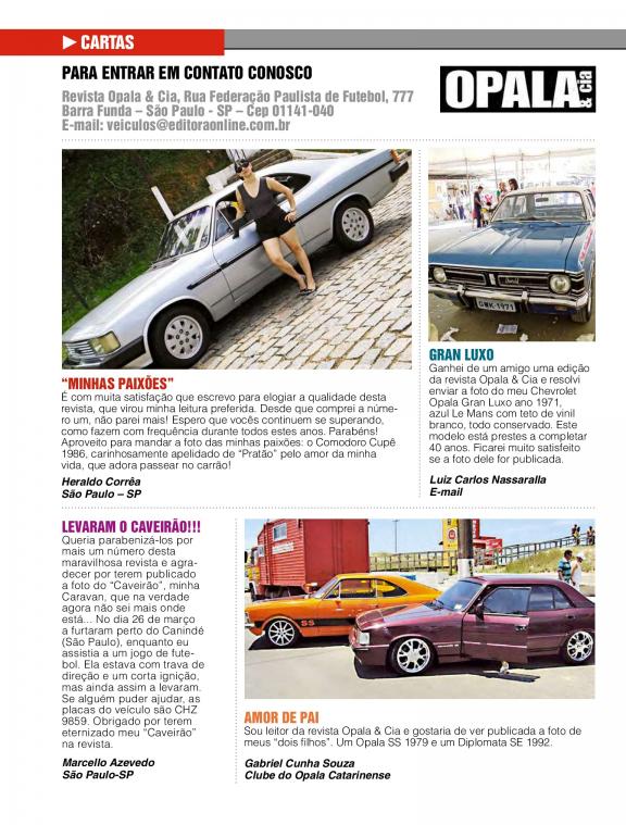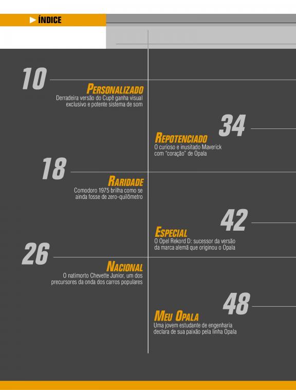Guia para amantes de Opala, traz matérias especiais com colecionadores, dicas de lojas especializadas em peças e eventos relacionados.