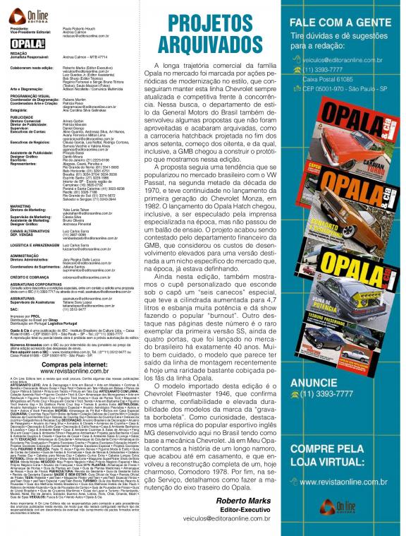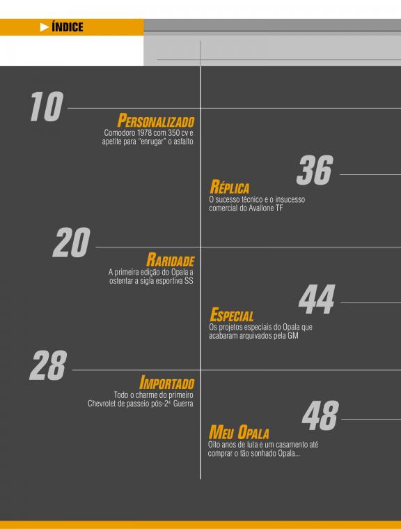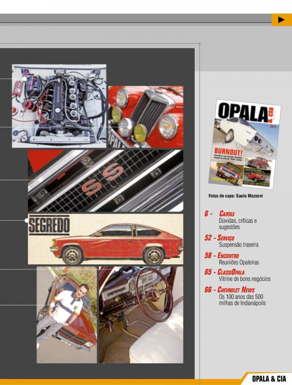 Guia para amantes de Opala, traz matérias especiais com colecionadores, dicas de lojas especializadas em peças e eventos relacionados.