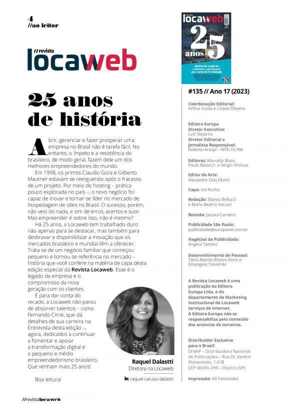 Esta é uma publicação customizada da maior empresa de serviços de internet do Brasil, a Locaweb. Uma publicação criada para os profissionais de TI, desde pequenas empresas a grandes corporações.