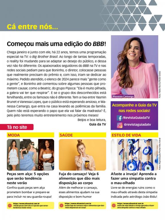O mundo dos artistas, bastidores da TV, flagras incríveis, entrevistas e pôsteres dos famosos. E mais: resumo de todas as novelas e revelações exclusivas sobre os personagens.