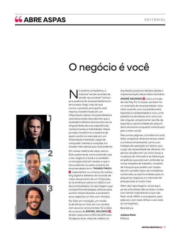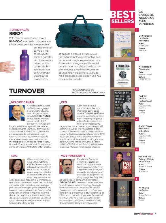 Voltada especialmente para os micros, pequenos e médios empresários, a revista é um verdadeiro guia de soluções para as questões que são entraves no dia a dia de um empreendedor. Fornece as melhores opções de investimento no mercado, além de dicas para potencializar sua carreira e seus negócios.