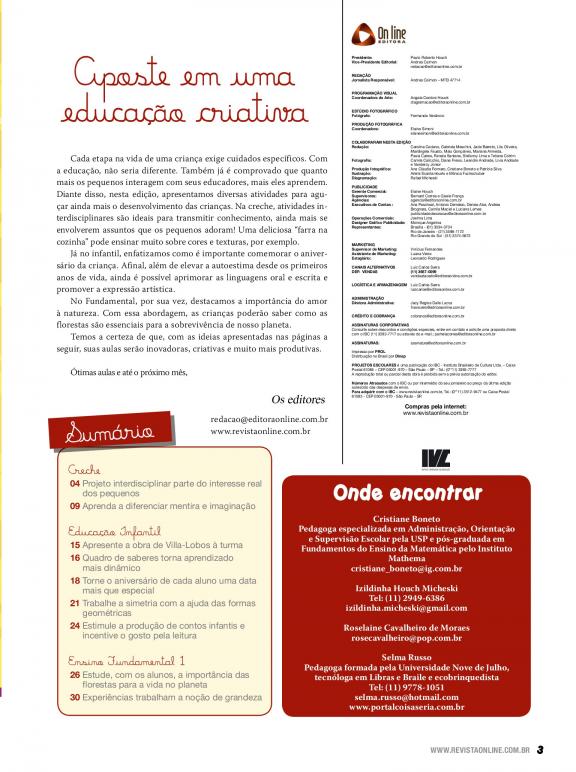 Revista dedicada a professores, pedagogos e interessados em assunto de educação. Traz dicas de atividades para aplicar na sala de aula, além da discussão de assuntos importantes como inclusão, bullying, etc.