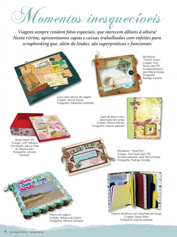 Muitas ideias e inspirações para criar seus álbuns utilizando a técnica do scrapbooking!