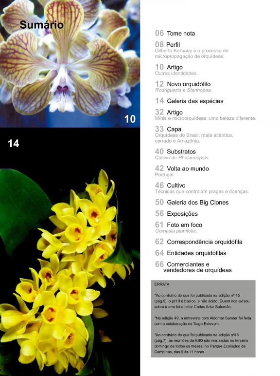 Na publicação “Mundo das Orquídeas” você confere as diferente espécies e como cultivá-las. Pessoas que fazem história na orquidofilia também não podem ficar de fora! Veja entrevistas exclusivas e muito mais.