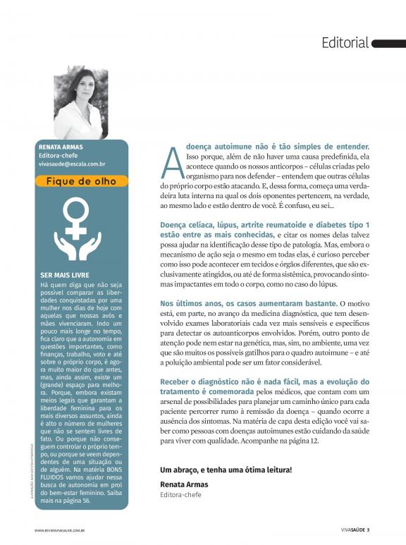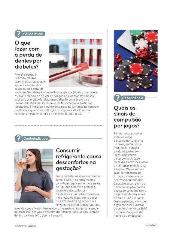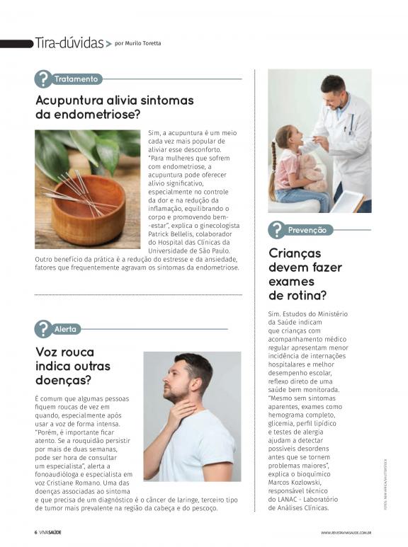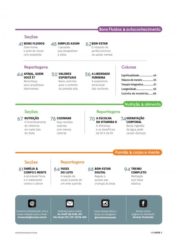 A revista Viva Saúde é um verdadeiro guia de saúde e bem-estar. Com uma equipe de consultores especializados, apresenta informações sobre os temas de saúde mais discutidos da atualidade, além de causas, sintomas e tratamentos de diversas doenças.
