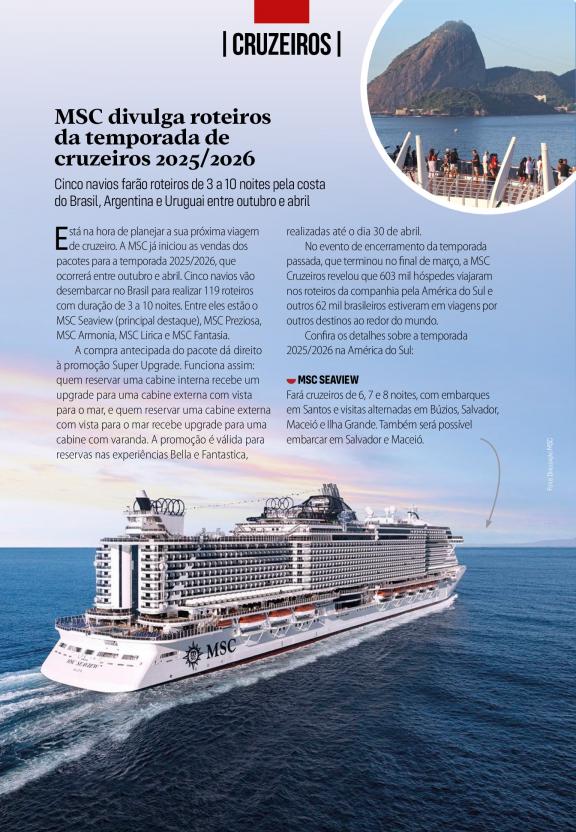 Tem como principal objetivo incentivar o maravilhoso desejo de viajar, com dicas, sugestões, impressões de viagens de repórteres experientes e belas imagens de roteiros no Brasil e no exterior - tudo para apresentar ao leitor cada destino!