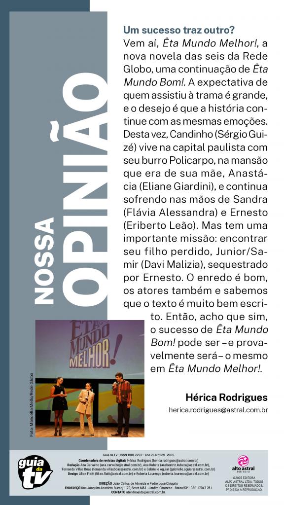 O mundo dos artistas, bastidores da TV, flagras incríveis, entrevistas e pôsteres dos famosos. E mais: resumo de todas as novelas e revelações exclusivas sobre os personagens.