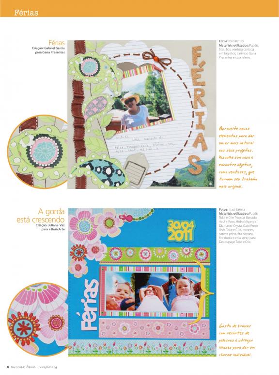 Muitas ideias e inspirações para criar seus álbuns utilizando a técnica do scrapbooking!