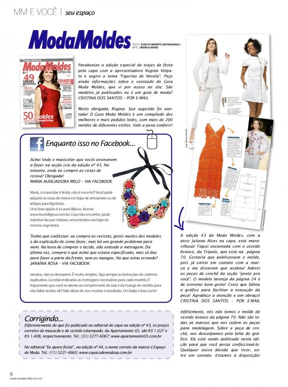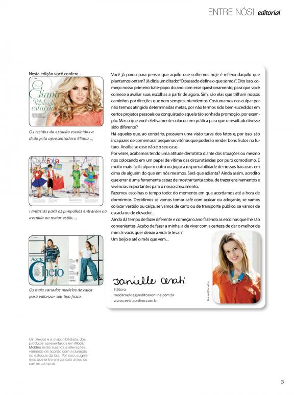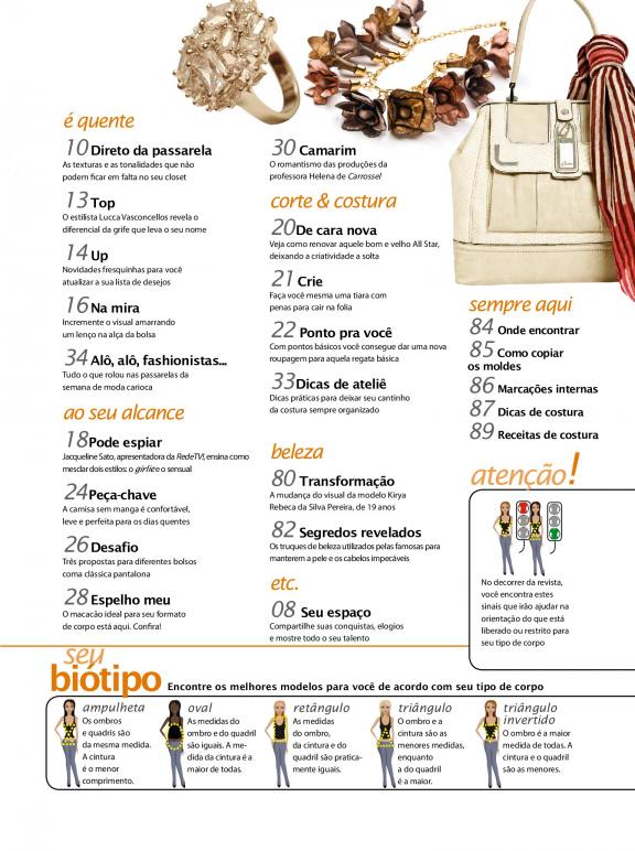 Revista para mulheres que gostam de ficar por dentro das tendências da moda e com o que vai emplacar nas vitrines. E as leitoras adeptas do "faça você mesma" contam com moldes exclusivos para enriquecer o guarda-roupa com muito estilo.