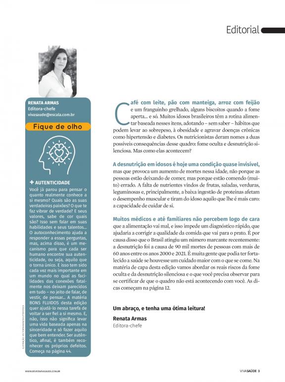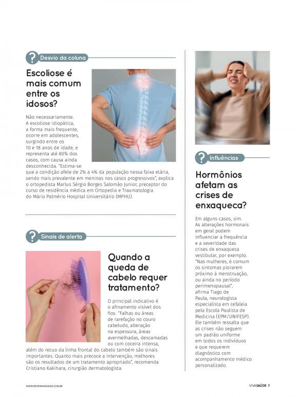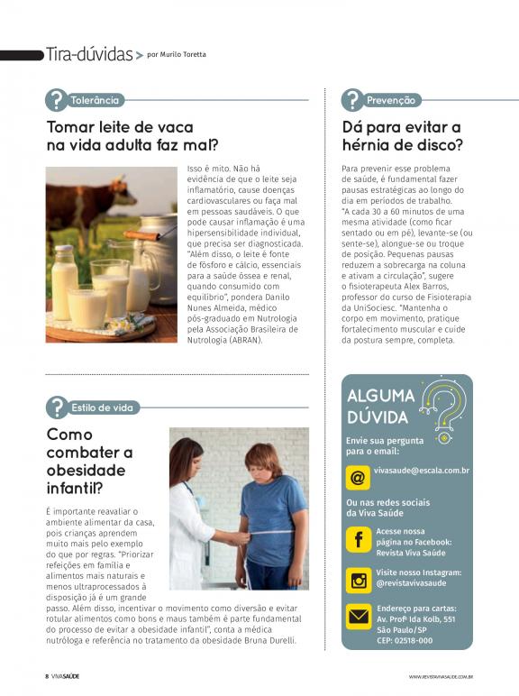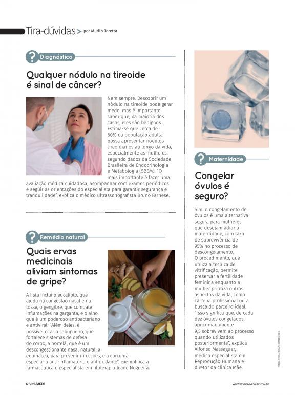 A revista Viva Saúde é um verdadeiro guia de saúde e bem-estar. Com uma equipe de consultores especializados, apresenta informações sobre os temas de saúde mais discutidos da atualidade, além de causas, sintomas e tratamentos de diversas doenças.