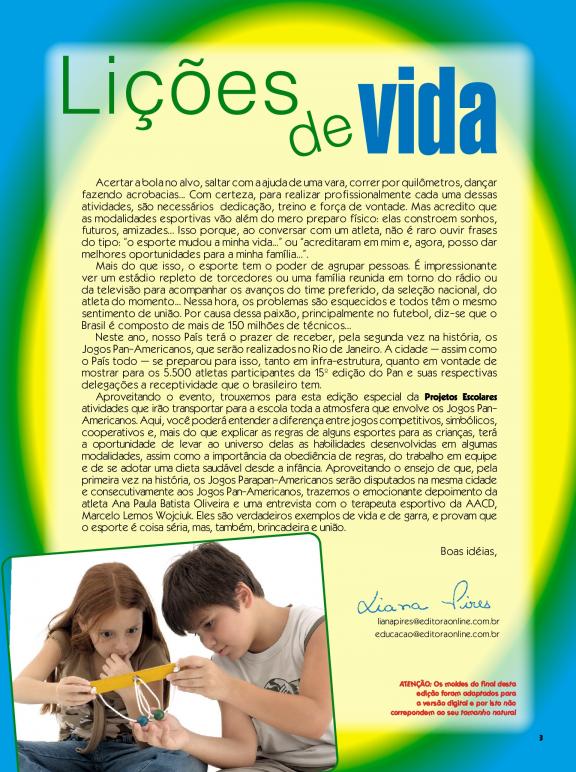Revista dedicada a professores, pedagogos e interessados em assunto de educação. Traz dicas de atividades para aplicar na sala de aula, além da discussão de assuntos importantes como inclusão, bullying, etc.