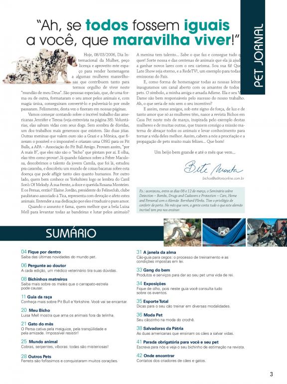 Revista dedicada aos amantes de pets, com edições dedicadas a cuidados e curiosidades sobre as raças.