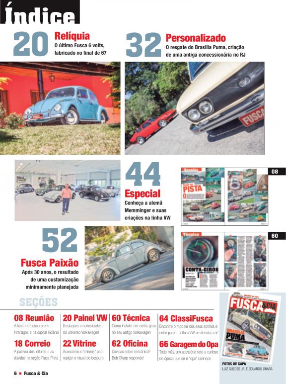 Guia para amantes de Fusca, traz matérias especiais com colecionadores, dicas de lojas especializadas em peças e eventos relacionados.