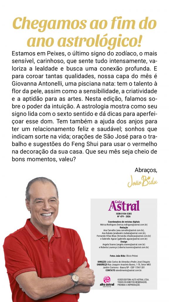 Na revista Guia Astral você encontra tudo sobre comportamento, dicas sobre amor, sexo, beleza, bem-estar, sucesso, família e famosos.