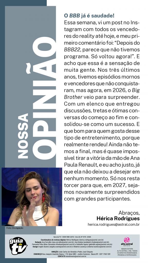 O mundo dos artistas, bastidores da TV, flagras incríveis, entrevistas e pôsteres dos famosos. E mais: resumo de todas as novelas e revelações exclusivas sobre os personagens.